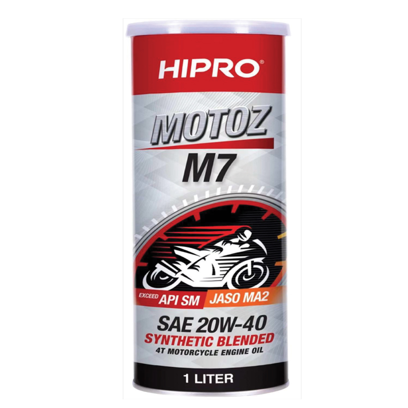 HIPRO MOTOZ M7 is advanced synthetic blended performance motorcycle engine oil specially engineered for all four-stroke engines running on extreme and all climate riding conditions. It is formulated with a combination of quality synthetic & conventional base oils mixed with the advanced additive system to provide sustained JASO MA2 clutch friction performance and outstanding protection against engine wear under high-temperature and high engine speed conditions. Boosted up with the latest technology HIPRO SaliTech® to achieve the highest protection for all types’ motorcycle engines.